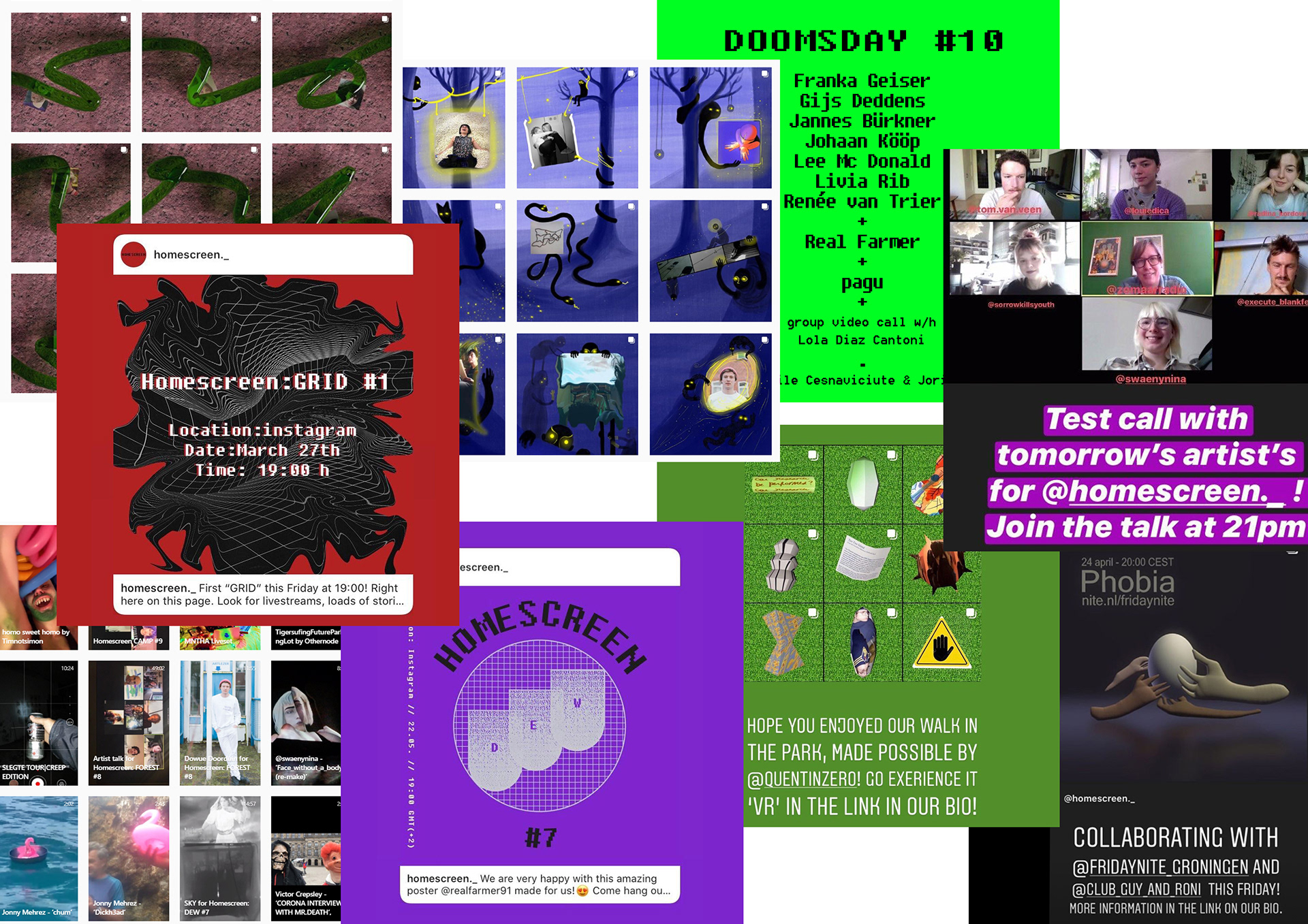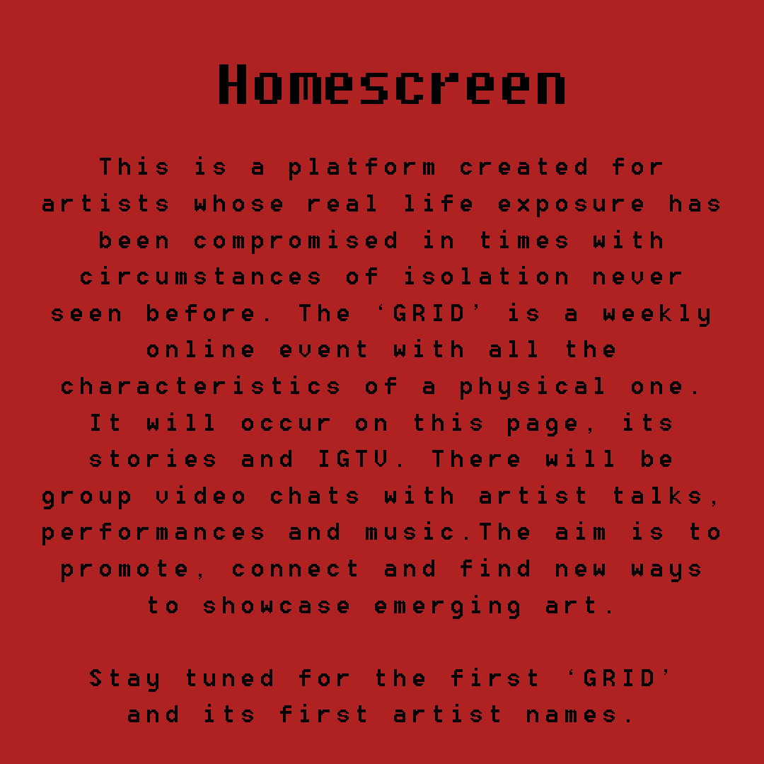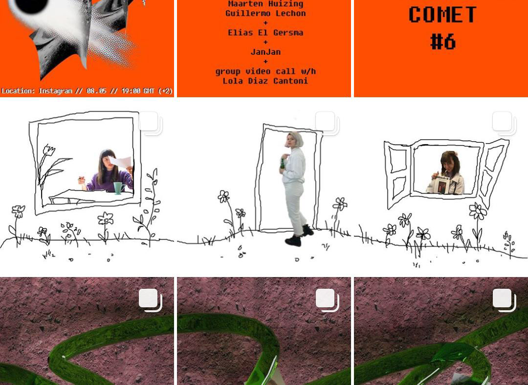 In the wake of the quarantine in the Netherlands, caused by COVID-19, cultural events of all sorts were put on hold or canceled. Due to the circumstances,ย an online platform to facilitate, connect, and promote artists and musicians emerged on Instagram. Every Friday night an event consisting of two musical acts, followed by the works of sixย artists, and finishing with an artist group talk, which was mediatedย by Lola Diaz Cantoni. Each edition had its own theme, given to an external artist to work in into a 9-square grid.ย It was meant to represent a space where art could be introduced and where a diversity of practices could co-exist. Each event also had a poster made by a second external artist.ย