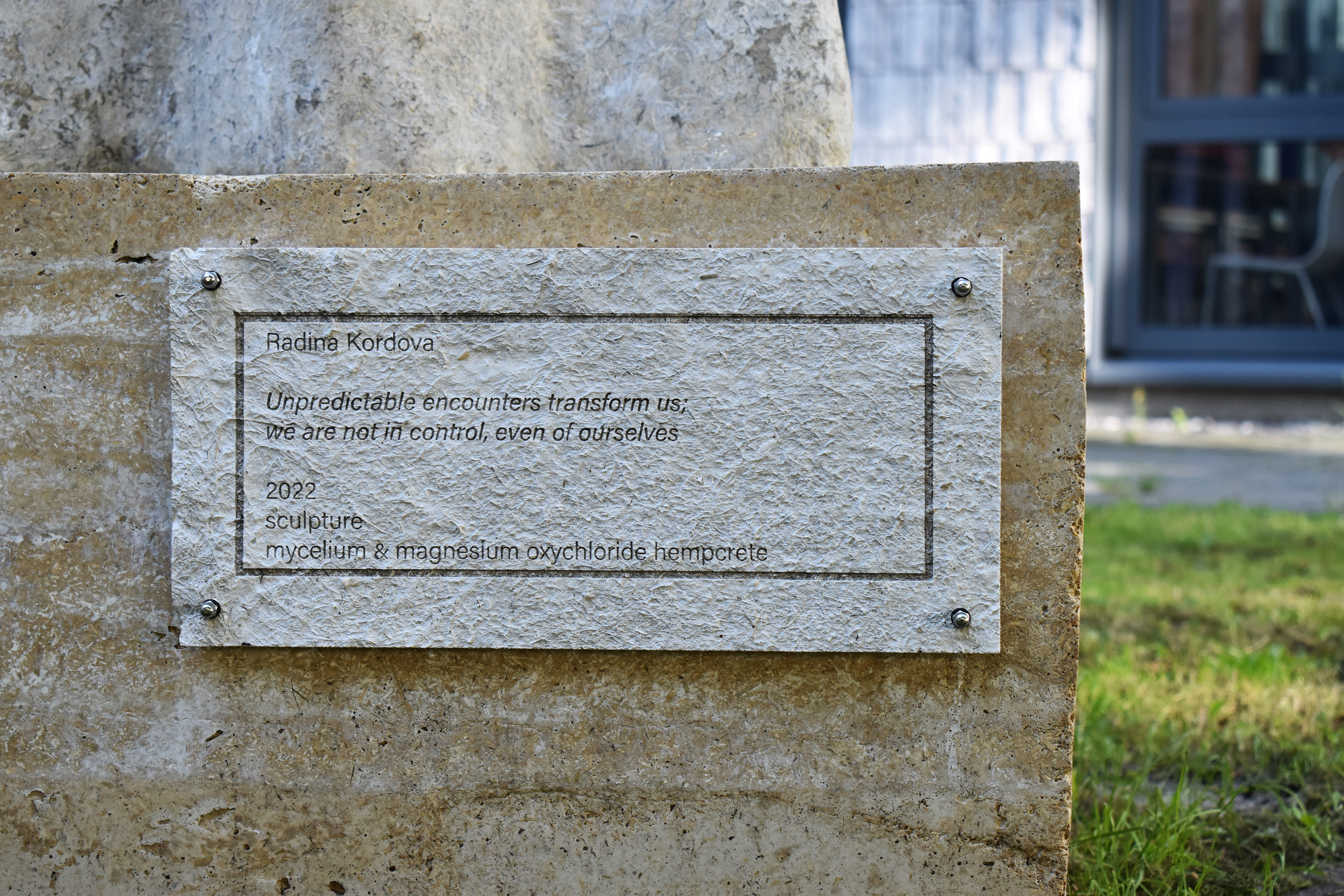 In the summer of 2021, I was granted a commission to create a public sculpture for the Hanzehogeschool, University of Applied Sciences in Groningen. During this time, I was researching the properties and applications of mycelium in daily life and ultimately decided to utilize the material in the creation of the sculpture. To obtain a sufficient quantity of materialsย for the project, I contacted a third-party company, "GrownBio"ย who helped me by providing me withย panels of mycelium, grown together with hemp.