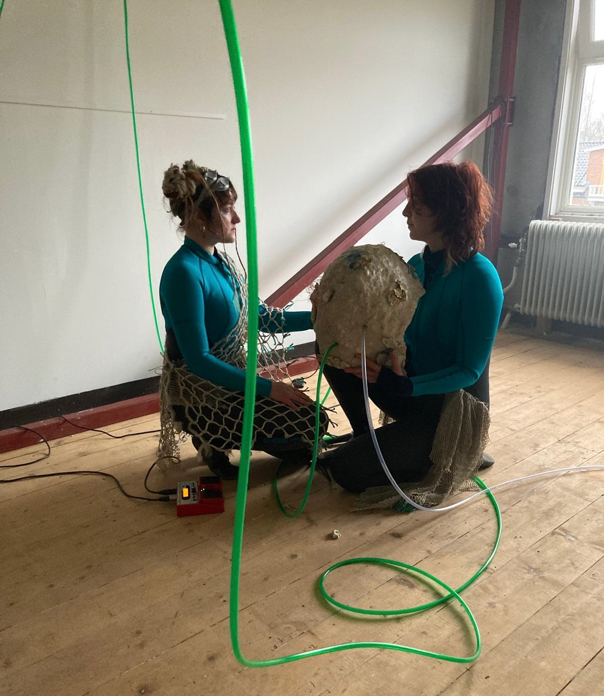 In the period between November and December '24, Radina and Samantha researched, gathered natural and reclaimed materials from the region’s coastlines, and connected with the local human and nonhuman surroundings. During their stay in the Bierumer School, they navigated through stories and experiences related to water and landscape. From field recording to hydro sounds, myths, material research, and foraging; each element captures and amplifies the voices of both human and non-human entities in relation to the area’s transformation.